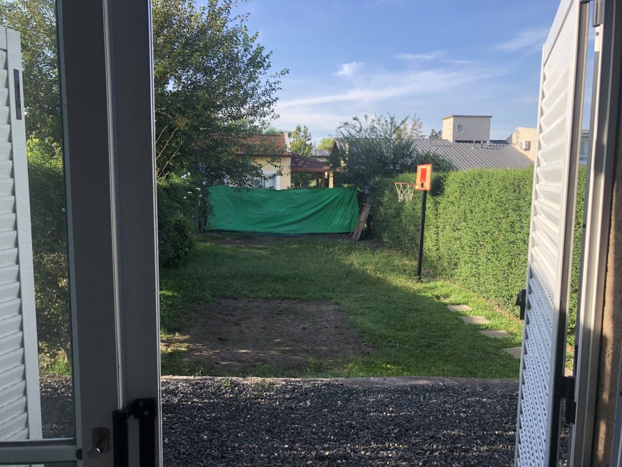 Cochera semi cubierta para 1 auto, jardín y Fondo Libre